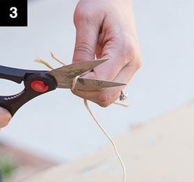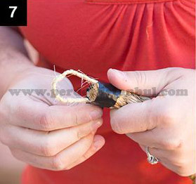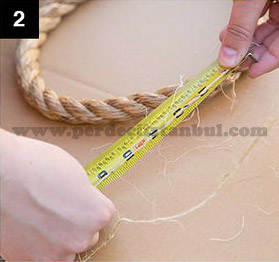 Halata yapıştırdığımız ince ipi örerek daha dekoratif bir görüntü elde ediyoruz ve ördüğümüz ipi halatın iki tarafına sıkıca yapıştırıyoruz.