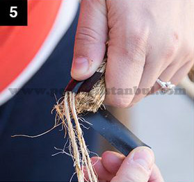 Halatın ucuna kullanacağımız ipimizi de ayarlıyoruz. Bu ipi istersek halat içerisinden çıkartabilir veya halatla aynı renkte başka bir ip kullanabiliriz.