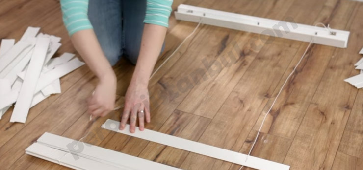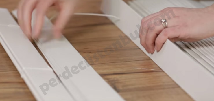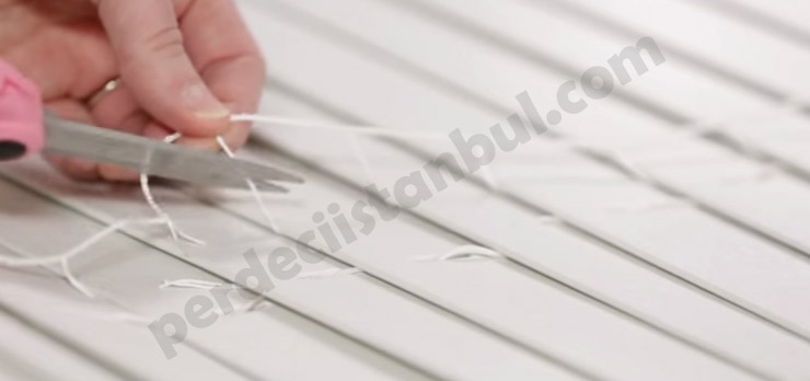2) Jaluzi şeritlerini birbirine bağlayan ipi kesip jaluziden tamamen ayırdıktan sonra, yeterli sayıda jaluzi şeridini sayarak en alta ayırıyoruz.
