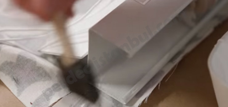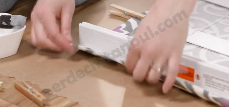 12) Son olarak jaluzinin ve perdenin alt bölümüne tutkal sürülür. Ardından birbirine sıkıca yapıştırılır. Bu işlemin ardından bir kaç saat tutkalın kuruması beklenir.